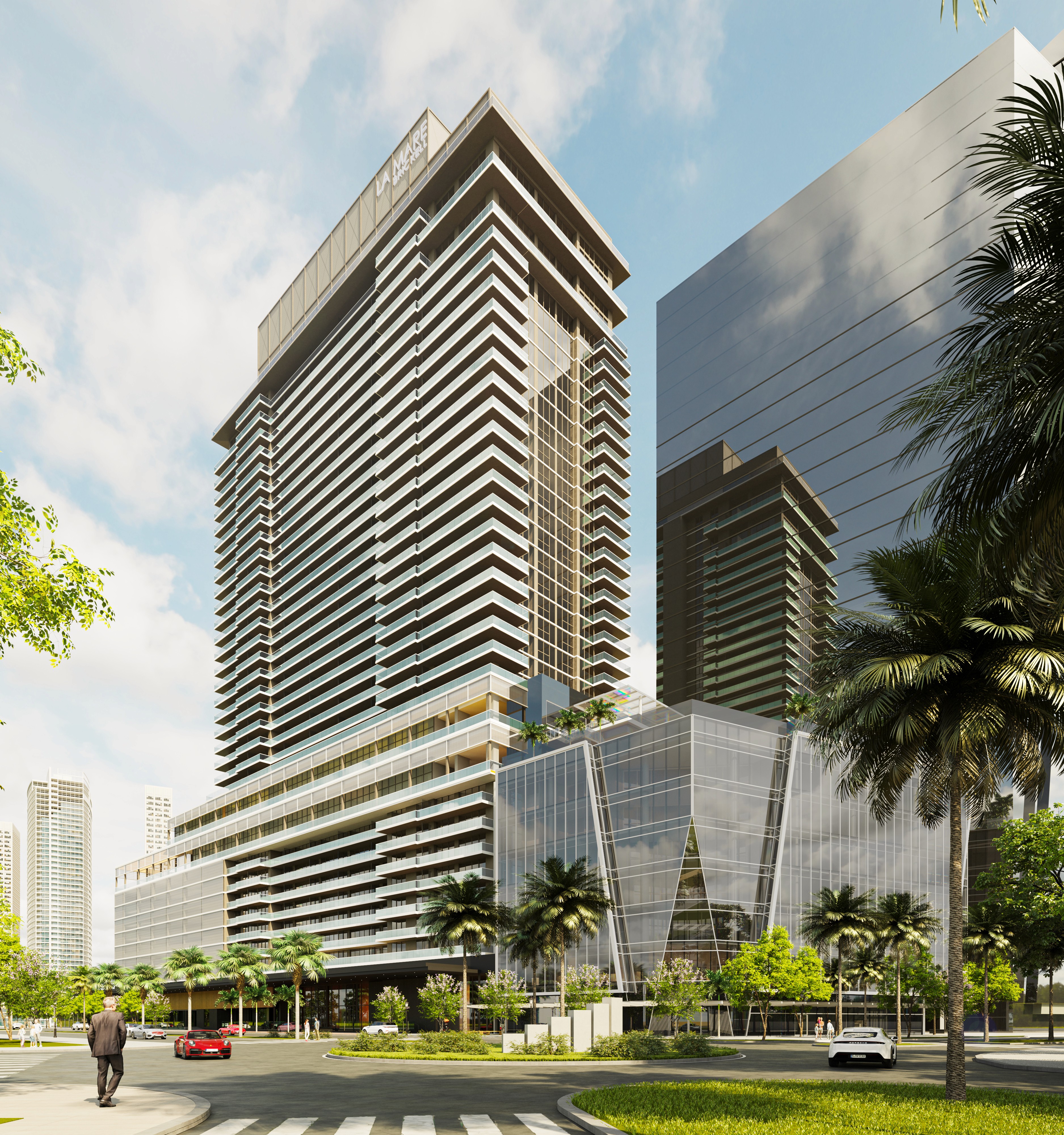 La Mare Hotel & Residences marks the stunning transformation of the 37-story One Broadway tower into a modern destination where refined residences meet elevated hospitality. Spearheaded by Park Place at Brickell LLC with architecture by FORMGROUP and Barcelo-Balanzo, the project brings 198 luxury homes and 123 hotel suites to the center of Miami’s most walkable neighborhood. Residents and guests will enjoy expansive floorplans, rooftop pools, curated dining, and sweeping city and bay views—all wrapped in a sleek new glass façade that redefines the Brickell skyline.