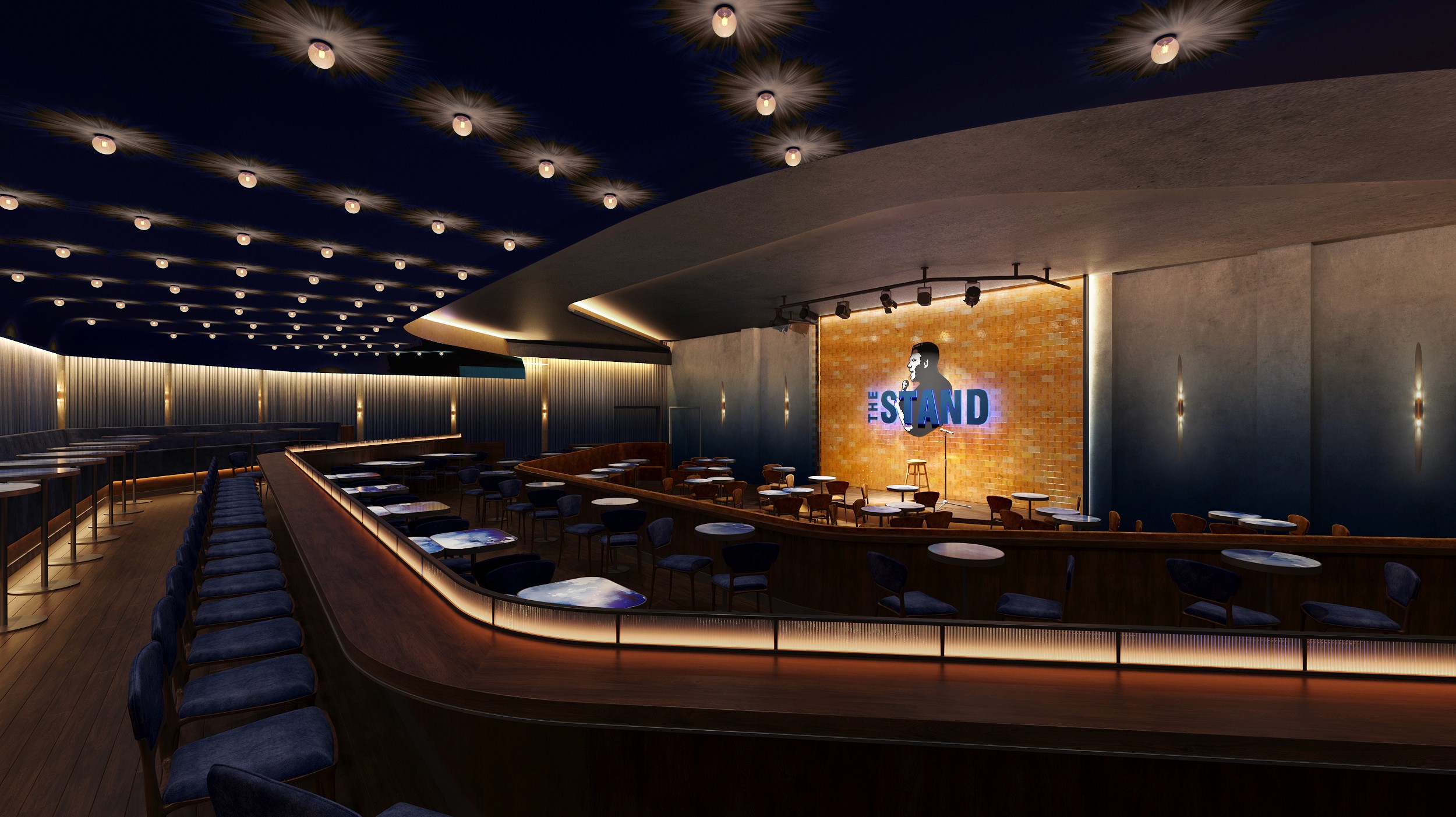 The Stand Miami represents a vibrant addition to Wynwood’s cultural landscape, combining a high-energy comedy club with an upscale restaurant and bar. Designed by FORMGROUP, this two-story venue brings the legendary NYC comedy brand to Florida for the first time. The space is crafted to accommodate diverse programming, from intimate stand-up shows to larger-scale events, while embracing the neighborhood’s artistic spirit. With a seamless focus guest experience, the design balances functionality with a lively, inviting atmosphere that captures the unique fusion of New York’s comedy scene and Miami’s vibrant energy.